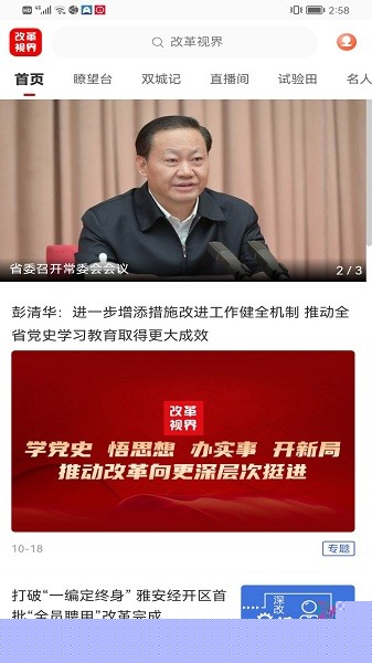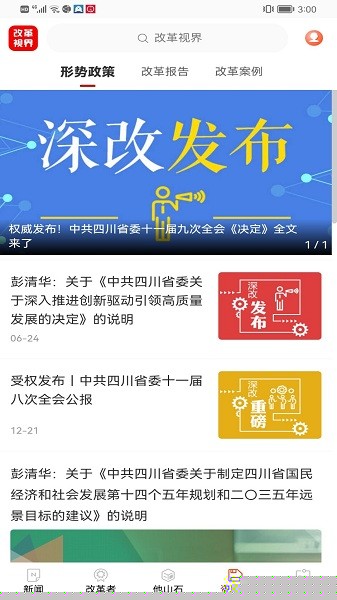 改革视界是一款由中共四川省委全面深化改革委员会办公室主导开发的政务信息服务平台,推动改革信息的公开化与公众参与的便捷化,汇聚了权威的政策发布、深度的改革实践解析以及生动的先锋人物故事,构建一个连接政府与公众的信息桥梁,帮助用户高效、系统地掌握四川省乃至全国最新的改革动向与决策精神。