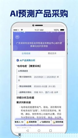 集成智能AI引擎,能够实时抓取并分析全网工程项目信息,快速识别潜在市场机会,确保用户获取一手、准确的商机线索。