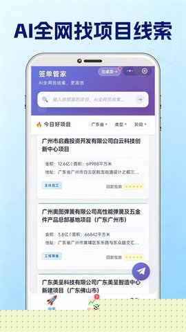 签单管家是一款面向工程行业从业者的专业业务辅助软件,通过智能化技术手段提升工程信息获取、客户资源整合与项目风险分析的综合效率,能够帮助用户快速挖掘潜在商机,对项目回款风险进行科学评估,并提供采购规模与成本的分析支持,从而辅助用户全面掌握项目情况,优化业务决策流程,实现更高效的项目管理与市场拓展。