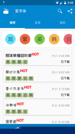 ifont爱字体是一款专注于移动设备字体个性化管理的软件汇集了海量经过版权授权的正版字体资源,覆盖中文、英文、韩文、日文等多种语言及艺术、手写、卡通等多元风格。用户能够便捷地浏览、预览、下载并一键更换系统及第三方应用内的字体,从而深度定制手机界面,满足从日常美化到商业设计等不同场景下的视觉表达需求,让数字生活的每一处文字都彰显独特个性。