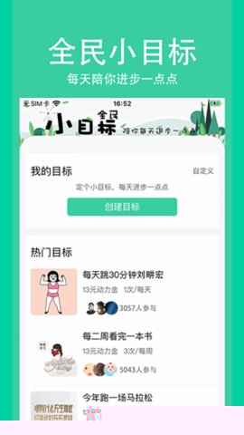 全民小目标是一款集目标管理、习惯养成与行为追踪于一体的综合性个人成长辅助应用,基于行为心理学与目标管理理论,为用户构建了一套从目标设定、过程追踪到成果反馈的完整闭环体系。用户可依据自身生活习惯与成长需求,创建高度个性化的计划,并通过直观的打卡与进度可视化工具,持续调整日常作息,逐步培养积极、自律的生活模式,实现个人效能的稳步提升。