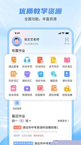 内置由专业教研团队开发的同步教材、拓展阅读、词汇库及海量听说试题,内容覆盖主流教材版本,确保教学材料的准确性与时效性。