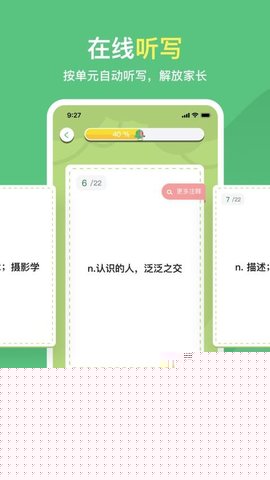 内置从小学到初中各年级所需的核心词汇与拓展词汇,并按照难度与主题分类,方便用户按需检索与学习。