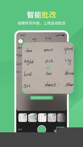 采用图像识别技术,用户完成听写后拍照上传即可获得自动批改与错误标注,大幅节省手动核对时间。