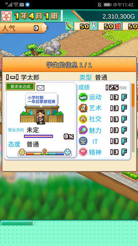 每位学生都拥有独立且动态成长的属性面板,涵盖运动、艺术、社交等多个维度,其能力发展直接受到课程安排与课外活动的影响。
