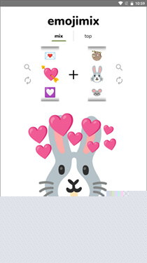 在本站下载并安装应用后,启动进入主编辑界面,点击中央的+按钮,从弹出的Emoji选择器中分别点选两个符号,系统将自动完成融合并显示预览。