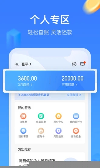 用户可在线完成信用评估,获取个人专属消费额度,并随时通过应用查询额度状态、使用明细及还款计划,实现自主财务管理。