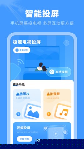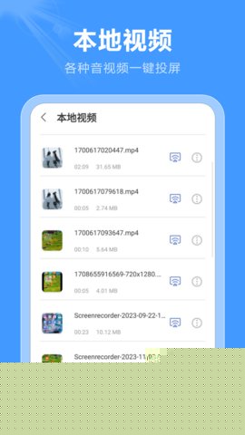 除屏幕镜像外,支持将本地存储的图片、视频、音频及常见文档文件直接推送至大屏设备播放或展示,无需启动镜像模式,节省设备资源。