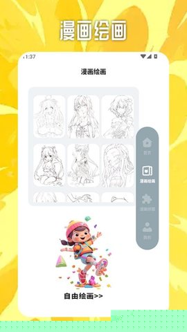 内置从临摹到原创的全套数字绘画工具与丰富模板,降低绘画门槛,激发用户创作灵感,实现从读者到创作者的转变。