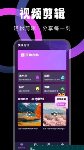 快映剪辑是一款功能全面的视频编辑软件,为用户提供从基础剪辑到高级特效的一站式创作软件,集成了视频裁剪、拼接、变速、滤镜添加、去水印、音频处理及格式转换等核心模块,支持高清视频输出,界面直观,适合不同技能水平的用户快速上手,高效完成各类短视频、Vlog及宣传片的制作。