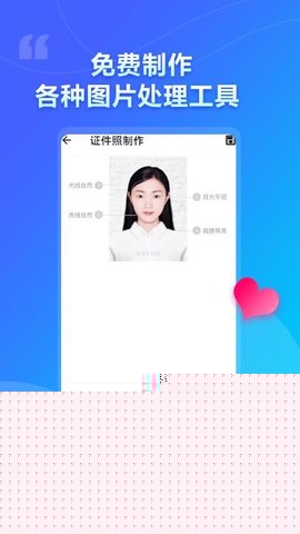 内置多种常用证件照规格模板(如一寸、二寸、护照等),允许用户上传个人照片,自动完成背景底色替换(红、蓝、白等)、裁剪对齐和尺寸标准化,满足各类考试、签证、入职等场景对证件照的快速制作需求。