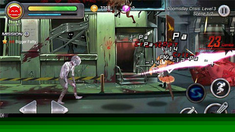 核心体验集中于横版场景下的移动与射击。利用虚拟摇杆控制角色位移,点击按键即可完成瞄准、开火以及释放特殊技能等操作。面对如潮水般涌来的丧尸,需要灵活走位规避包围,并把握时机使用范围性技能清理密集敌群。