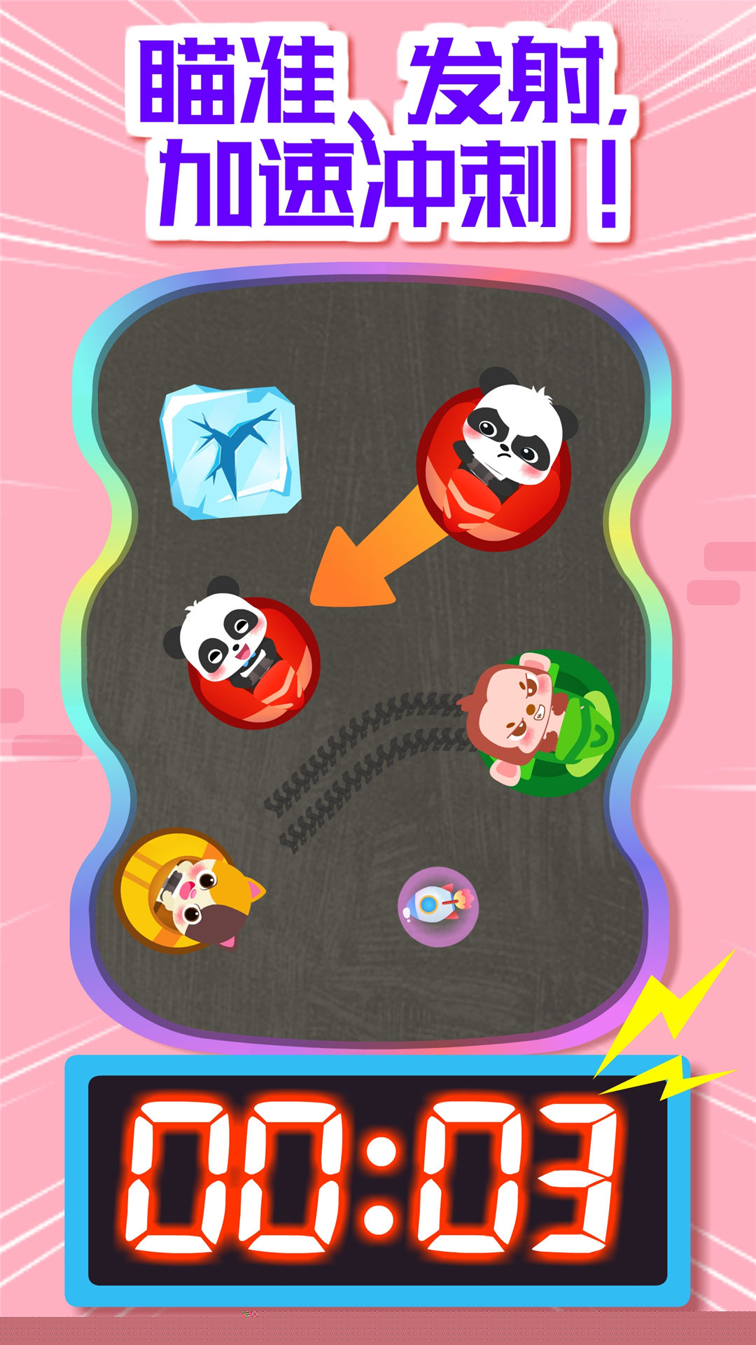 面对困住伙伴的冰块障碍,需操控碰碰车进行撞击破解,完成救援任务,培养问题解决能力与同理心。