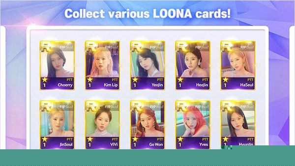 收集并升级以LOONA各成员为主题设计的精美卡牌,每张卡牌都拥有独特的艺术造型与属性加成。