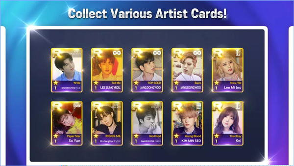 通过游戏进程收集并升级艺人主题星卡,每张卡片都承载独特视觉与属性加成,是提升演出评分的关键要素。