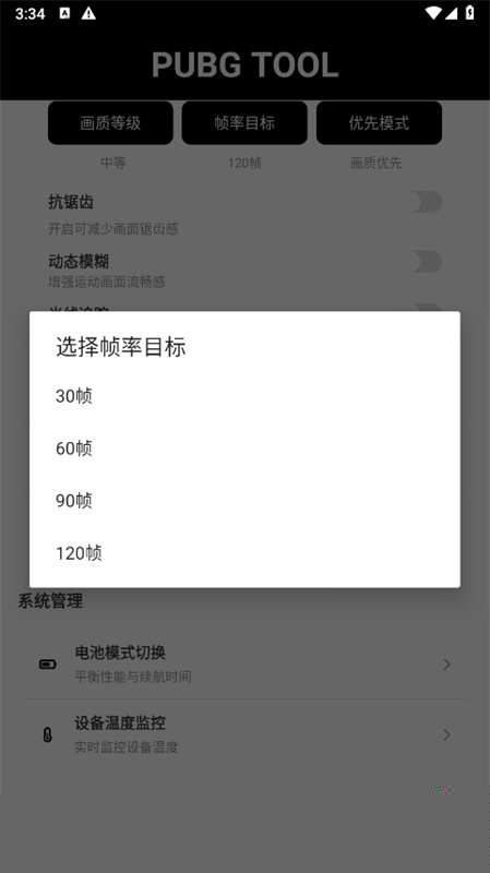 如需使用GFX Tool等其他画质修改应用,必须先在PUBGTool120帧中长按解锁/关闭画质帧率以取消其画质修改,否则其他工具可能无法生效。