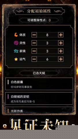 体质、灵性、金钱、运气四大基础属性并非静态数值们会随着人生中的各类随机事件产生动态起伏,形成持续的博弈点。
