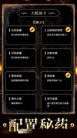 提供了大量效果各异的天赋选项,支持自由搭配与组合,从而衍生出近乎无限的角色构建策略与人生发展路径。