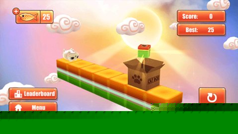 核心目标在于将猫咪安全送达终点盒子。主要交互方式为触屏操控:单指接触屏幕并左右滑动,即可控制整个跑道的倾斜方向。向左滑动,跑道左倾,猫咪会向右滑动;反之亦然。通过反复微调倾斜角度,可以控制猫咪的滑动速度与方向,使其沿着预设跑道向盒子前进。