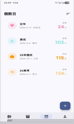 倒数日模块现支持单次日期提醒,周期性事务需手动重复创建。迭代版本正在研发智能周期规则引擎,未来可配置按月、按年等循环提醒模式。