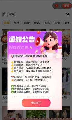 追趣宝是一款融合短剧娱乐与红包奖励的移动应用,通过提供海量免费短剧内容,结合多元化的互动任务与激励机制,让用户在享受追剧乐趣的有机会获得实际收益。其核心在于构建一个内容消费与轻量级创收并行的生态,操作简便,适合各类用户在碎片化时间中使用。