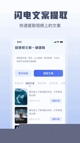 闪电文案提取是一款基于人工智能技术的智能文本处理应用,能够将语音实时转换为文字、从图像中精准识别并提取印刷体或手写体文本,支持对音频文件进行文字转写,集成了多模态信息处理能力,适用于会议记录、学习笔记、资料数字化等多种场景,通过高效的信息提取与转换,显著提升信息处理效率,是个人与团队进行知识管理的得力助手。