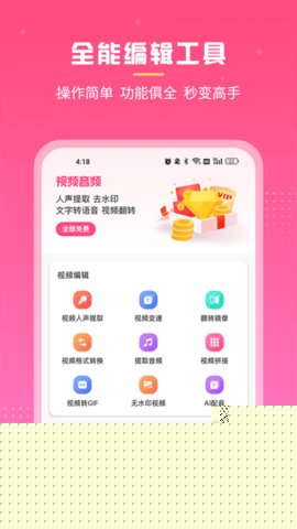 视频音频人声是一款集视频处理与音频编辑于一体的专业多媒体处理软件,其核心能力在于精准分离视频中的音轨并提取纯净人声或背景音乐,提供视频翻转、变速、格式转换及音频剪辑、合并等综合编辑功能,为用户提供一站式、高效率的媒体内容创作与优化软件。