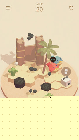 场景中分布着各类互动机关,转换石子颜色的装置、单向通行通道或需要特定数量石子激活的桥梁。高效通关的秘诀在于整体规划而非逐步试错。建议在行动前,先利用双指缩放功能全面观察场景布局,预估所有石子的收集路径及可能经过的机关。单指滑动旋转视角则能帮助发现隐藏角落或理清空间关系。记住,步数限制是主要约束条件之一,每一次移动都应尽可能服务于多个目标,在前往收集一颗石子的路上,顺路触发一个机关。