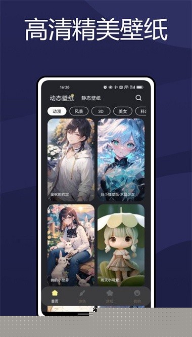 整合了涵盖自然风光、抽象艺术、动漫游戏、明星偶像等众多类别的高质量壁纸,从高清静态图片到流畅的动态视频,资源持续更新,确保总能发现新颖内容。