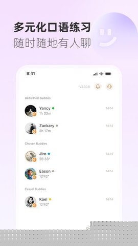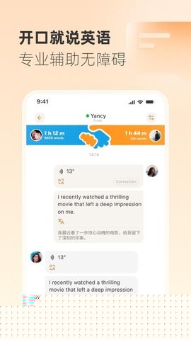 支持发送与接收语音消息,打破时空限制。在任何方便的时间段进行口语输出并收听伙伴的回复,尤其适合应对碎片化时间难以安排实时对话的痛点。