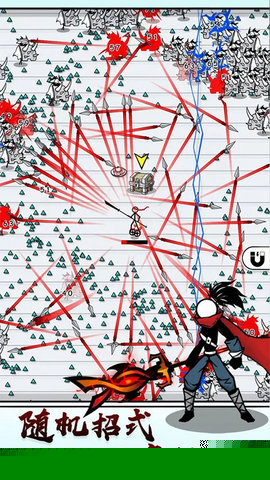 融合手绘笔记本背景与简笔火柴人的美术风格,界面元素极度精简,有效降低了无关信息的干扰,使的注意力完全集中于战斗动态本身。