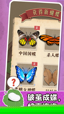 破茧而出的并非终点,开启蚕茧将随机获得不同种类与稀有度的蝴蝶,丰富的收集元素持续激发的探索与期待。