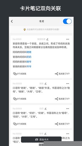 在编辑卡片时,轻松嵌入指向其他卡片的链接,并反向查看所有引用当前卡片的来源。部分高级视图能将所有链接关系以图形化的知识图谱呈现,直观展示知识体系的拓扑结构,帮助用户洞察信息间的深层联系。