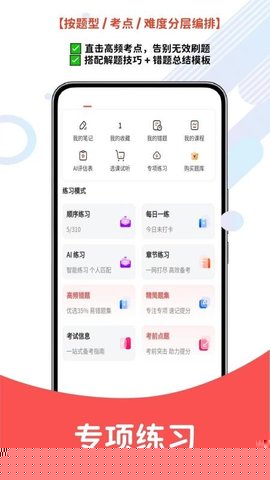 按照考试大纲划分章节,提供对应的练习题,便于用户分模块巩固知识,构建系统化知识体系。