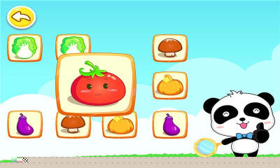 采用自由探索+游戏巩固的模式。孩子先通过点击认识蔬菜,再通过连连看游戏进行记忆强化,多重刺激加深印象。
