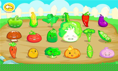 孩子可以在菜园场景中随意点击任何蔬菜,随即触发该蔬菜的名称语音介绍及动态效果,实现哪里不会点哪里的自主探索式学习。
