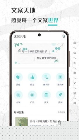 文案够是一款专为文字创作者设计的文案软件,为用户提供丰富多样的文案素材。无论是日常生活的点滴,还是重要时刻的情感表达,用户都能在此找到灵感的源泉。这里汇集了各类文案,包括朋友圈的分享、节日祝福和趣味段子,满足不同场景下的创作需求。通过图文结合的方式,用户的创作能够更具表现力,随时随地翻阅,轻松获取打动人心的文字,拥有多种类的文案素材,涵盖生活、情感、节日等多种场景,确保用户在不同情况下都能找到合适的表达方式。结合文字与图片素材,提升了创作的趣味性与表现力,让用户的文案更加生动和吸引人。提供趣味内容的浏览,帮助用户随时激发写作灵感,丰富个人创作的素材库。灵感源泉:软件中汇聚了大量创意文案,助力用户在创作时轻松找到灵感。收藏与分享功能:将喜欢的文案进行保存或分享,便于随时回顾和与朋友交流。多场景适用:无论是社交媒体、节日祝福,还是日常生活,皆能找到合适的文案素材,满足多样化的需求。广告文案创作:提供经典广告文案的集合,帮助用户激发创作灵感,提升文案质量。营销文案支持:针对微商和广告人,提供专业的文案创作指导,助力品牌传播。灵感激发工具:通过丰富的文案素材,帮助用户在创作过程中打破思维局限,激发创作灵感。更新优化:定期进行版本更新,提升用户体验,增强软件的稳定性。在本站下载文案够软件后,首先创建个人账户,方便保存和分享文案。根据需求选择不同的文案类别,浏览相关文案素材,快速找到所需内容。将喜欢的文案进行收藏,或直接分享给朋友,提升社交互动。在本站找到文案够的下载链接,点击后按照提示完成安装即可,支持生活、情感、节日等多种类型的文案,满足用户的多样化需求。在浏览文案时,选择分享功能,将文案通过社交平台发送给朋友。使用文案够后,用户会发现其文案素材丰富多样,极大地提升了创作的灵感和效率。无论是日常的社交分享还是特别的节日祝福,都能轻松找到合适的表达方式,帮助用户更好地传达情感。整体体验非常流畅,值得推荐给所有文字爱好者。
