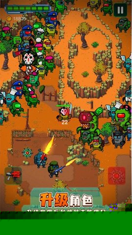 生存的核心在于移动与火力的平衡。角色移动由虚拟摇杆控制,射击则为自动朝向最近敌人或手动拖拽瞄准。初期应优先熟悉地图边缘移动,利用障碍物规避远程攻击,并集中火力快速清除具有特殊能力(如自爆、召唤)的威胁单位。每波敌人袭击后会有短暂喘息时间,此时是搜刮场景资源、修复护甲的关键窗口。