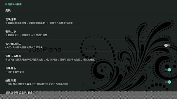 支持左右手习惯自定义,并提供音色、判定效果等多种参数调整,适应不同用户的偏好。