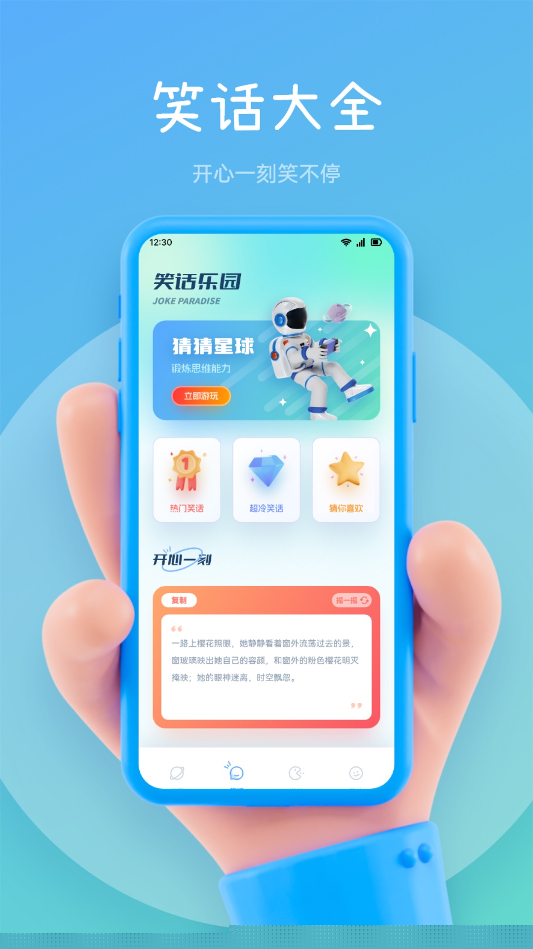 提供分类清晰的笑话库与轻松短文,用户可随时随地浏览,作为快速的情绪调节工具,帮助在繁忙间隙获得片刻放松与愉悦。