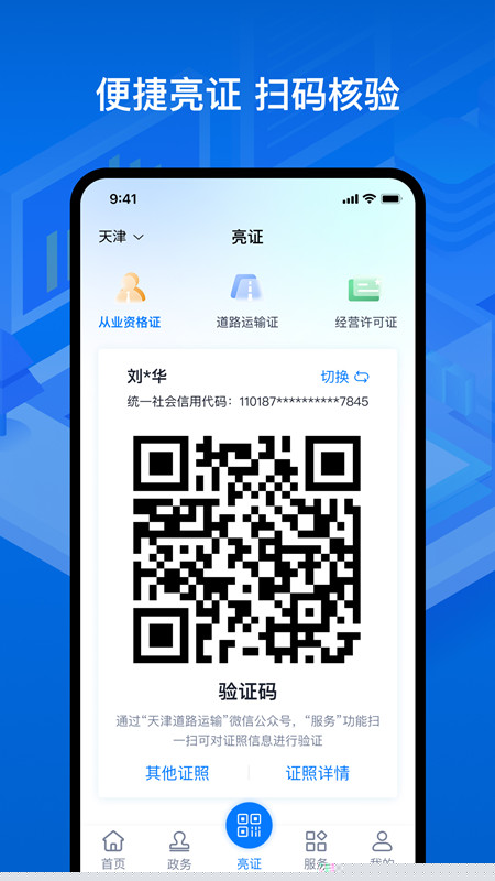 提供灵活的证照授权功能,从业者可临时授权他人使用指定证照信息;管理人员可通过扫码等方式快速核验证照真伪与状态。