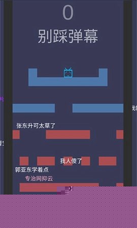 别踩弹幕是一款融合了弹幕文化与平台跳跃机制的休闲益智作品,将操控一个灵动的小方块,在由密集且动态的弹幕构成的垂直场景中穿梭。核心目标是通过精准的左右位移与跳跃,避开所有迎面而来的弹幕,安全抵达不断上升的下一层平台。其画面色彩鲜明,节奏明快,将躲避挑战与视觉冲击巧妙结合,为寻求轻松一刻与反应力考验的提供了别具一格的娱乐选择。