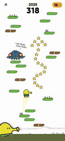 涂鸦跳跃2是一款延续经典物理跳跃玩法的休闲益智手游,通过重力感应操控角色在层出不穷的平台上持续向上攀登。本作在保留前作精髓的基础上,大幅拓展了视觉表现与关卡元素,色彩鲜明的涂鸦风格画面搭配多变的主题场景,构建出充满想象力的垂直冒险世界。角色跳跃手感流畅,平台类型与机关道具丰富多样,每一次起落都考验着的即时反应与空间预判能力,在简单的操作中提供极具挑战性和重复可玩性的高分追逐体验。