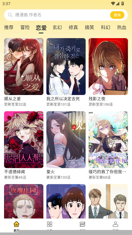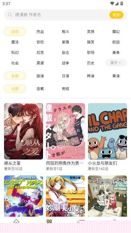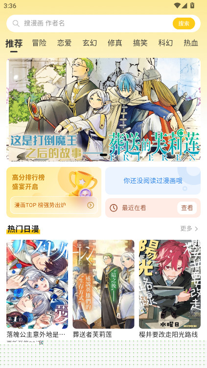 启动应用后,可在首页浏览推荐板块或通过顶部搜索框直接输入作品名称。点击目标漫画封面进入详情页,选择开始阅读按钮即可进入阅读器界面。