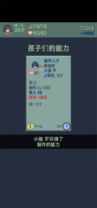 大出产时代DX汉化版是一款融合了家族经营与生活模拟元素的像素风格养成游戏。将扮演家族开创者,通过选择职业、规划人生、组建家庭并繁衍后代,体验跨越数代人的家族兴衰史。其独特的角色定制与开放式的剧情发展,为提供了高度自由的个性化体验,在简单的像素画面下蕴含着丰富的情感与策略深度。