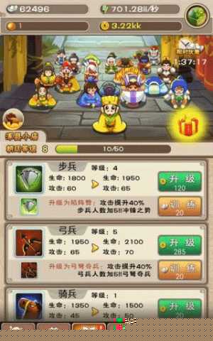 初期阶段,资源积累是首要任务。专注于提升刘备的磕头效率,并尽快解锁并升级首批文官。这些文官能够提供稳定的自动收益,为后续发展奠定坚实的资源基础。完成新手指引任务可以获得大量启动资金,用于优先升级主城核心建筑,解锁更多功能与高级兵种。