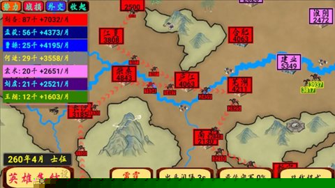 的核心目标是占领更多城池并击败其他势力。除了军事打击,还需关注随时间出现的增益选择,合理强化自身实力。战斗中,武将技能的配合、地形利用以及针对敌方主力动向的预判,共同构成了高级战术体系。最终胜利属于那些能将直观操作与深远谋略完美结合的统帅。