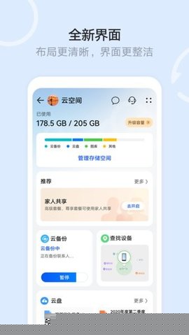 界面布局清晰,核心功能入口明确,即便是初次使用的用户也能快速上手,完成文件查找、分享、备份等日常操作。