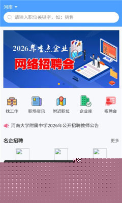 聚合企业招聘信息,还实时更新各地线上线下招聘会日程,并提供最新人才政策、就业指导、劳动法规等实用资讯,是获取本地就业市场动态的一站式信息门户。