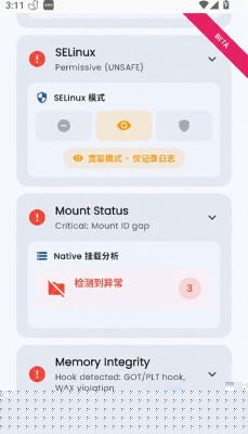 模拟高安全要求应用(如金融支付、特定游戏)的检测逻辑,预先验证当前设备的隐藏方案是否有效,避免实际使用中出现封禁风险。
